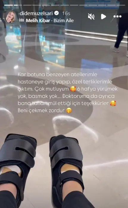 Ünlü oyuncu Didem Uzel, sosyal medya üzerinden ayakları bandajlı bir fotoğrafını paylaşarak tekerlekli sandalye kullanmak zorunda olduğunu duyurdu.