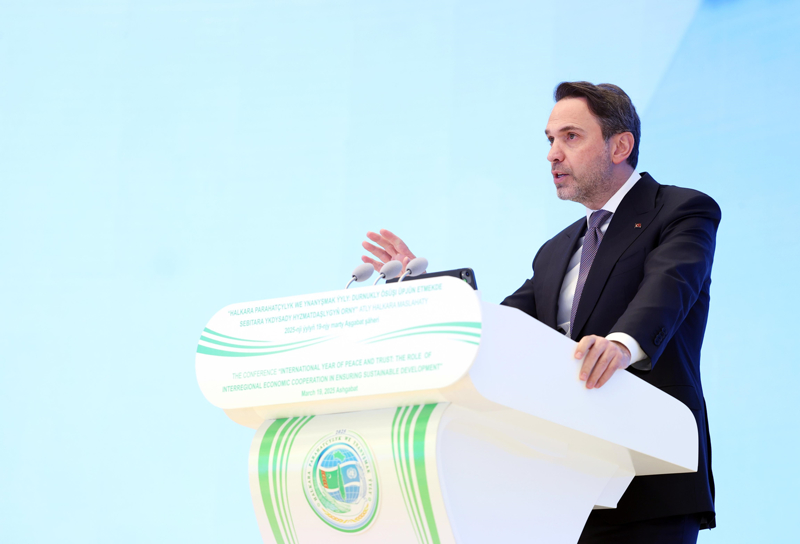 Bakan Bayraktar, Aşkabat’ta düzenlenen “Barış ve Güvenlik Yılı: Sürdürülebilir Kalkınmanın Sağlanmasında Bölgesel Ekonomik İşbirliği Uluslararası Konferansı”na katıldı. Konferansta Türkiye’nin enerji vizyonunu katılımcılarla paylaştı. 2025 yılının Türkmenistan’ın girişimiyle Birleşmiş Milletler tarafından “Uluslararası Barış ve Güvenlik Yılı” olarak ilan edileceğini belirten Bayraktar, enerji iş birliklerinin artırılmasının önemine dikkat çekti. Zorlukları aşmanın en etkili yolunun karşılıklı güvene dayalı uzun vadeli ortaklıklar kurmak olduğunu ifade etti. Türkiye’nin enerji stratejisinin iki temel zorluğa odaklandığını açıkladı.