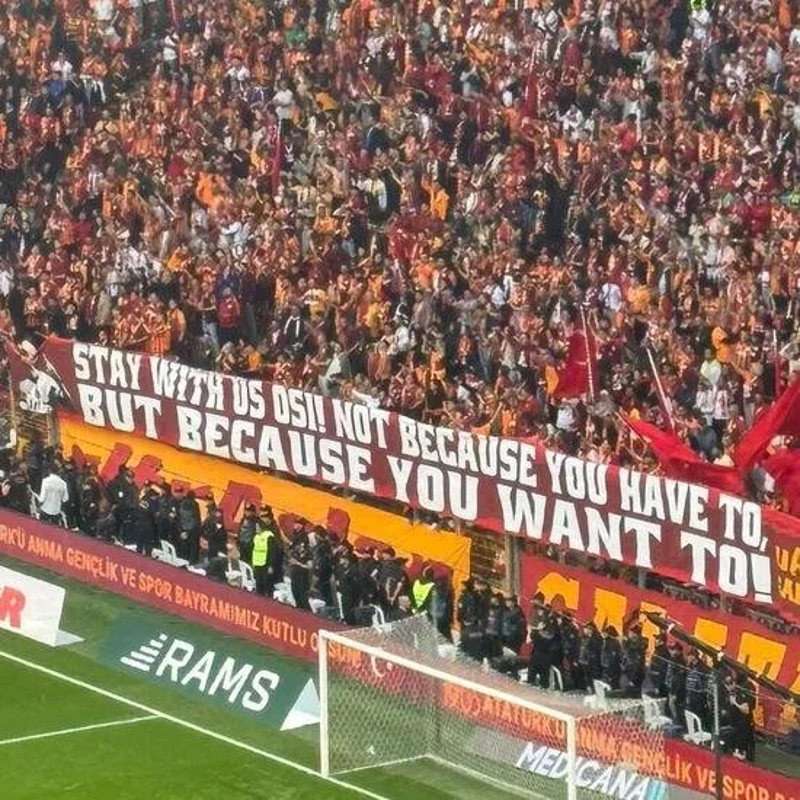 Bunun yanı sıra, Galatasaray taraftarları Osimhen için “Zorunda olduğundan değil, sen istediğin için bizimle kal Osi.” yazılı pankart açarak duygu ve düşüncelerini ifade etti.