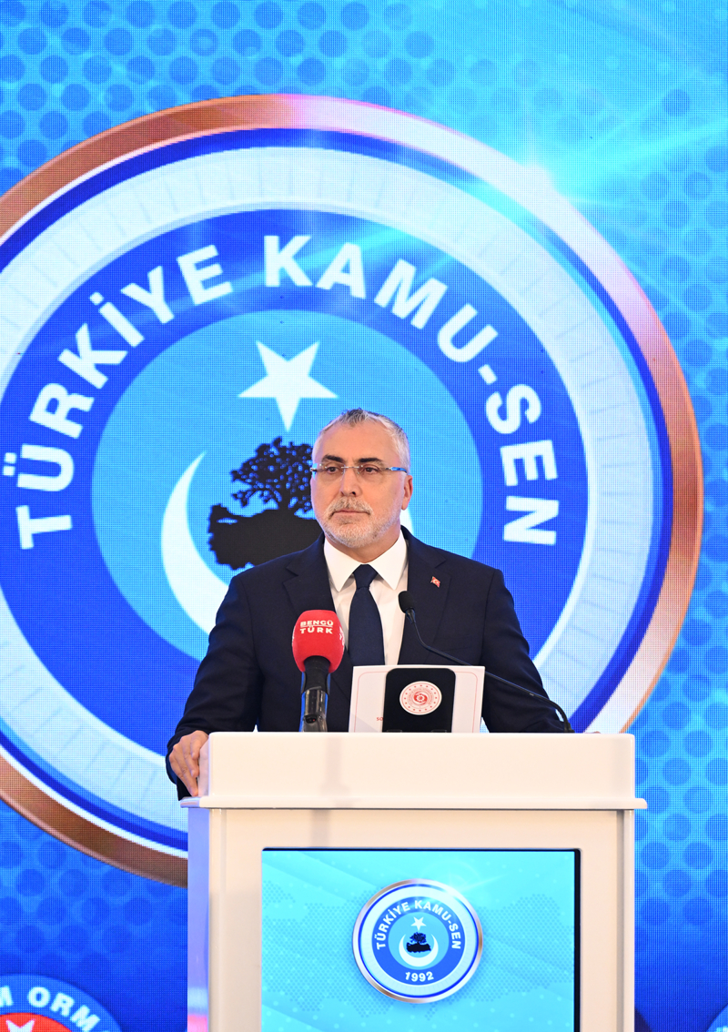 “Son 23 yılda kamudaki sendikalaşma oranı yüzde 47’lerden yüzde 75’e çıkmıştır. Sendikalı kamu personeli sayısı ise 650 binden 2,3 milyona ulaşmıştır. Elbette bu rakamları daha da yukarılara taşımayı hedefliyoruz. Ancak, maalesef Türkiye, kamu sendikacılığı dahil kıdemli inisiyatiflerin iş hayatında özgürce temsil edilemediği, emek, alın teri, hak, adalet gibi insanlık için evrensel, bizler için ise kutsal sayılan değerlerin göz ardı edildiği bir karanlık dönemden geçmiştir. Cumhurbaşkanımız Sayın Recep Tayyip Erdoğan’ın liderliğinde, çalışanlarımızın sendikal özgürlüğünün sağlanmadığı bir zor dönemden, sosyal paydaşlarımızla birlikte kamu personel yönetiminde geçmişte ‘çözülemez’ denilen sorunları çözüme kavuşturduğumuz günlere gelinmiştir.”