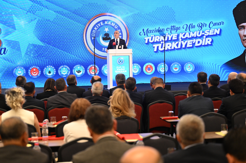 Işıkhan, kamu personel yönetiminde en önemli paydaşların kamu görevlileri sendika ve konfederasyonları olduğunu belirterek, 1995 yılında yapılan anayasa değişikliği ile kamu çalışanlarına sendika kurma hakkı tanındığını, 2001’de yürürlüğe giren ilgili kanunla birlikte memur sendikacılığının yasal bir çerçeveye kavuştuğunu hatırlattı.