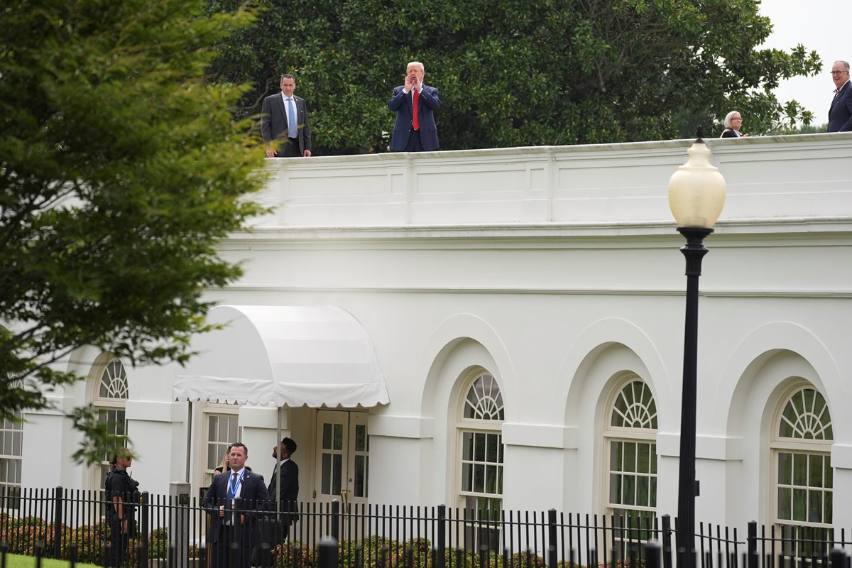 ABD’nin 45. Başkanı Donald Trump, Beyaz Saray’ın çatısında yürüyüş yaparken görüntülendi. Gazeteciler, Trump’a “Orada ne yapıyorsunuz?” sorusunu yönelttiklerinde, “Küçük bir yürüyüş yapıyorum” şeklinde yanıt verdi.