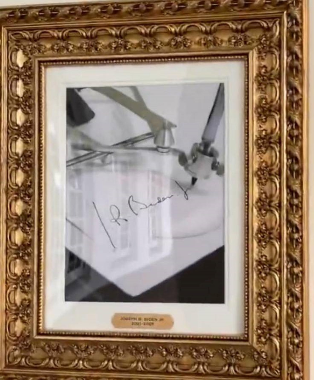 Serginin fotoğraflarında, tarihi başkanların altın çerçeveleri dikkat çekerken, Biden’ın portresinin yerinde farklı bir detay bulundu.