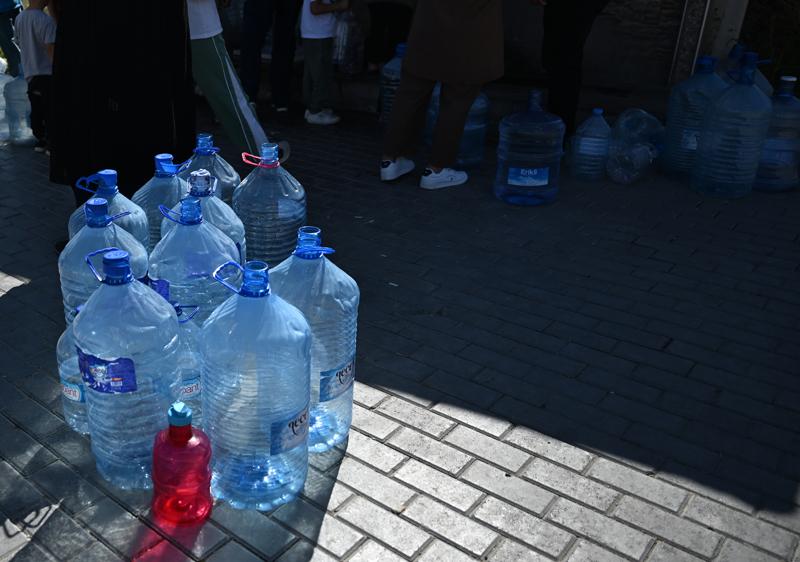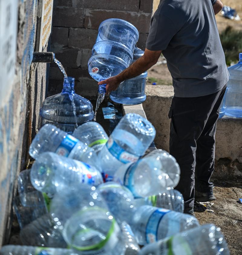 Ellerinde damacana, bidon ve çeşitli kaplarla çeşme başında bekleyen halk, sık sık uzun kuyruklar oluşturuyor.