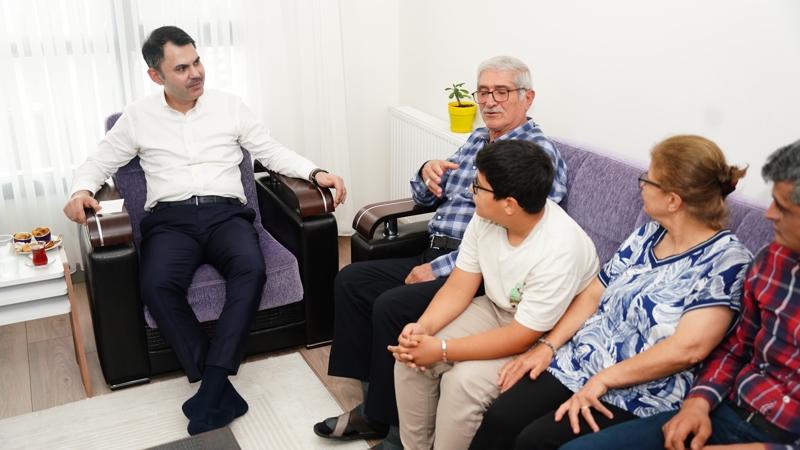 Bakanlık tarafından yapılan açıklamada, Bakan Kurum’un Hatay ziyaretinde, Antakya’nın Güzelburç Mahallesi’nde yeni evlerine taşınan Açıkgöz ailesini ziyaret ettiği duyuruldu.