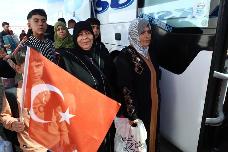 Kahramanmaraş’ta yaşayan Suriyelilerin geçici barınma merkezinden ülkelerine dönüşleri devam ediyor. Bugün de otobüslerle aileler yola çıktı.