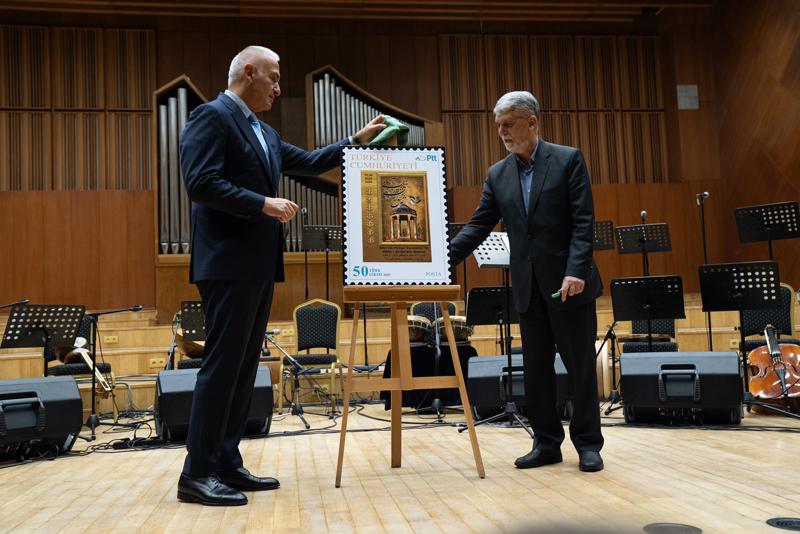 Konuşmalar sonrasında, 2025 Türkiye-İran Kültür Yılı anısına özel olarak hazırlanan pul, iki bakan tarafından imzalandı.