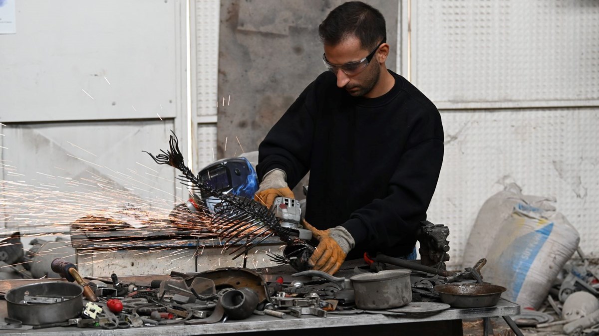 22 yaşındaki Mücahit Diyar Arız, Anadolu Üniversitesi Güzel Sanatlar Fakültesi Heykel Bölümü mezunu olarak, Uluönder Mahallesi’ndeki atölyesinde çocukluk döneminden beri devam eden sanat tutkusunu heykel eğitimiyle bir araya getiriyor.Sanat serüvenine hurdalıkta bulduğu bir yığın kaşığı kullanarak başlayan Mücahit, özellikle eserlerinde metal malzemeleri tercih ediyor ve bu seçiminde de aile mesleği olan balıkçılığın izlerini taşıyor.Müslüman sanatçı, metali tercih etme nedenini “Farklı malzemeleri bir araya getirerek eser oluşturma” şeklinde açıklıyor ve sanayi ortamının sunduğu kolay malzeme erişimini avantaja çevirerek tutkusunu geliştirmeyi planlıyor.Mücahit Diyar Arız, metalin çekiciliğini şu şekilde dile getiriyor: “Ben bir heykel ürettiğimde dünyanın dört bir yanından metal toplayıp bir araya getirebiliyorum. Bu süreç benim için oldukça ilgi çekici.”.Sanayinin metal sanatı için uygun bir zemin sağladığını vurgulayan Arız, “Burada çalışmanın kolaylığından faydalanarak malzemeye ulaşmanın çok basit olduğunu belirtiyor. Her ne kadar bu bölge mermerle anılsa da metal bulmakta zorlanmıyorum.” ifadesini kullanıyor.Genç sanatçı, “Çıkan gürültünün bir sorun yaratmadığı sanayi ortamında daha rahat çalışıyorum. İş hayatım daha küçük yaşlarda başladı. Ailemdeki herkes balıkçıydı ve ben de onlarla geçirdiğim zamanlarda bu mesleğin inceliklerini öğrendim.” şeklinde konuşuyor.Okul yıllarında hurdalıklara gidip malzeme topladığını aktaran Arız, öğretmeninin metalden balık yapabileceğini söyledikten sonra bu alanda eser üretmeye başladığını belirtiyor. “Sevdiğim için ne kadar hızlı çalıştığımı fark ettim. Bu tutkumu daha ileri taşımak istiyorum.” diye ekliyor.