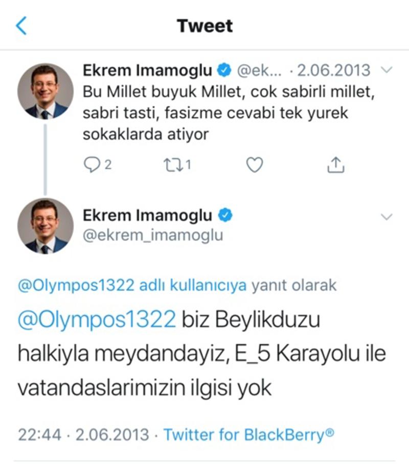 İmamoğlu’nun 1-2 Haziran 2013 tarihli paylaşımları şöyle: