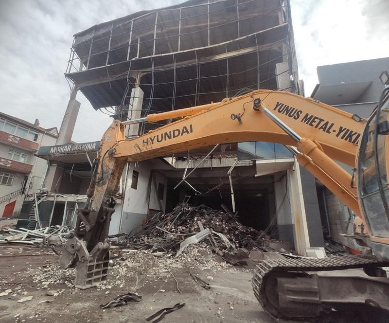 Mimar Sinan Mahallesi Mimar Sinan Caddesi’nde 8 Kasım tarihinde meydana gelen ve 7 kişinin yaşamını yitirdiği, 6 kişinin ise yaralandığı yangının ardından fabrika alanında yıkım çalışmaları sürüyor.
