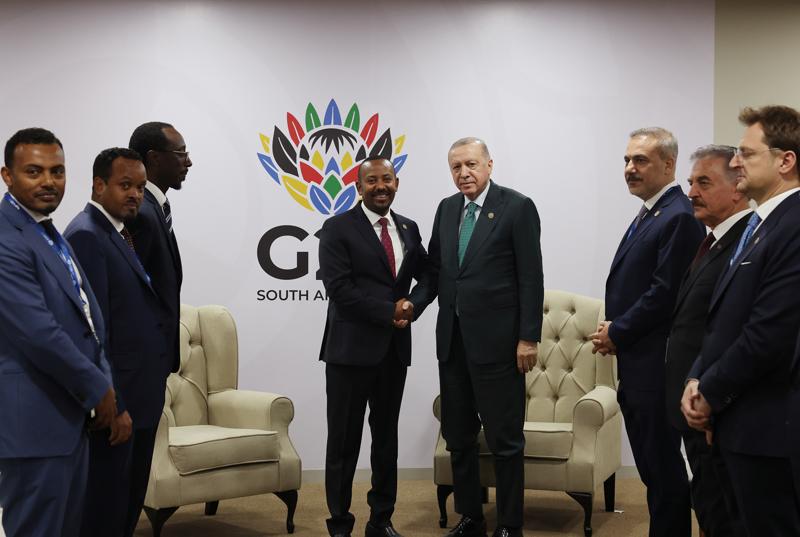 Cumhurbaşkanı Recep Tayyip Erdoğan, G20 Liderler Zirvesi nedeniyle Etiyopya Başbakanı Abiy Ahmed Ali’yi kabul etti. Bu görüşme, Johannesburg Expo Center’da basına kapalı olarak gerçekleştirildi.