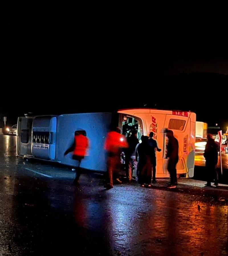 Kaza, akşam saat 19.50 sularında Osmaniye – Gaziantep D-400 Karayolu’nun Kanlı Geçit mevkiinde gerçekleşti. Edinilen bilgilere göre, yağmur nedeniyle kayganlaşan yolda kontrolünü kaybeden 34 SD 1521 plakalı yolcu otobüsü devrildi. Sürücüsü henüz tespit edilemeyen otobüsün neden olduğu kazayı gören vatandaşlar, durumu hemen yetkililere bildirdi. Olay yerine çok sayıda ambulans, itfaiye ve polis ekibi sevk edildi. Devrilen otobüste bulunan 3 yaralı, sağlık ekiplerinin ilk müdahaleleri sonrasında çevre hastanelere kaldırıldı.