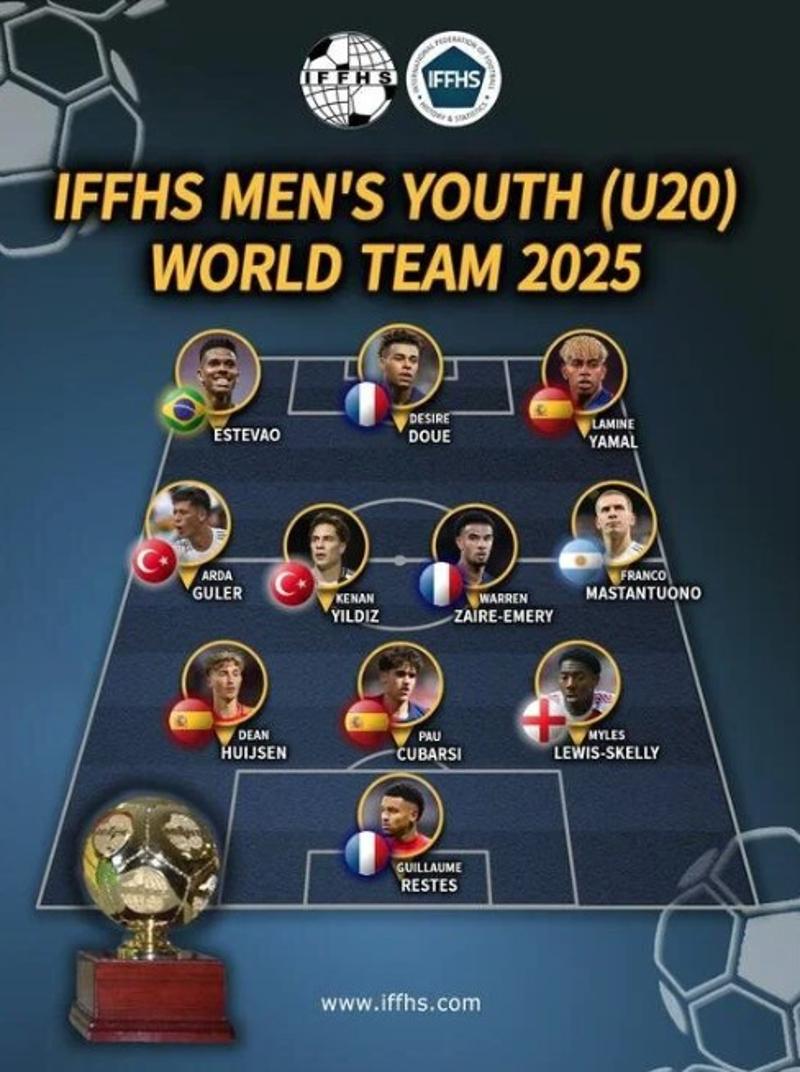 Uluslararası Futbol Tarihi ve İstatistikleri Federasyonu (IFFHS), 2025 yılı için en iyi 20 yaş altı takımını açıkladı.