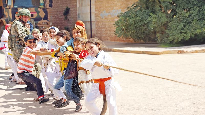 İsrail’in bu paylaşımı, Milli Savunma Bakanlığı tarafından sert bir yanıtla karşılandı. Bakanlık, halat çekme yarışı yapan Türk askerlerinin ve Suriyeli çocukların yer aldığı bir fotoğraf paylaştı.