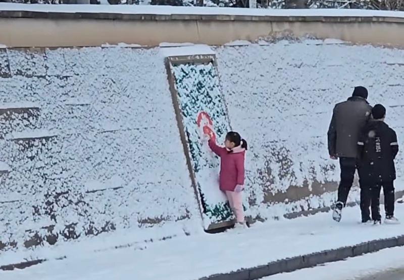 Zeynep Ebrar, yürüyüş esnasında Evrak Kabristanlığı duvarında bulunan Türk bayrağı motiflerinin karla kaplandığını keşfetti. Babasının elini bırakan Zeynep, bayrak motifini dikkatlice temizleyip öptü. O an, belediyeye ait kar küreme ekipleri tarafından kaydedildi.