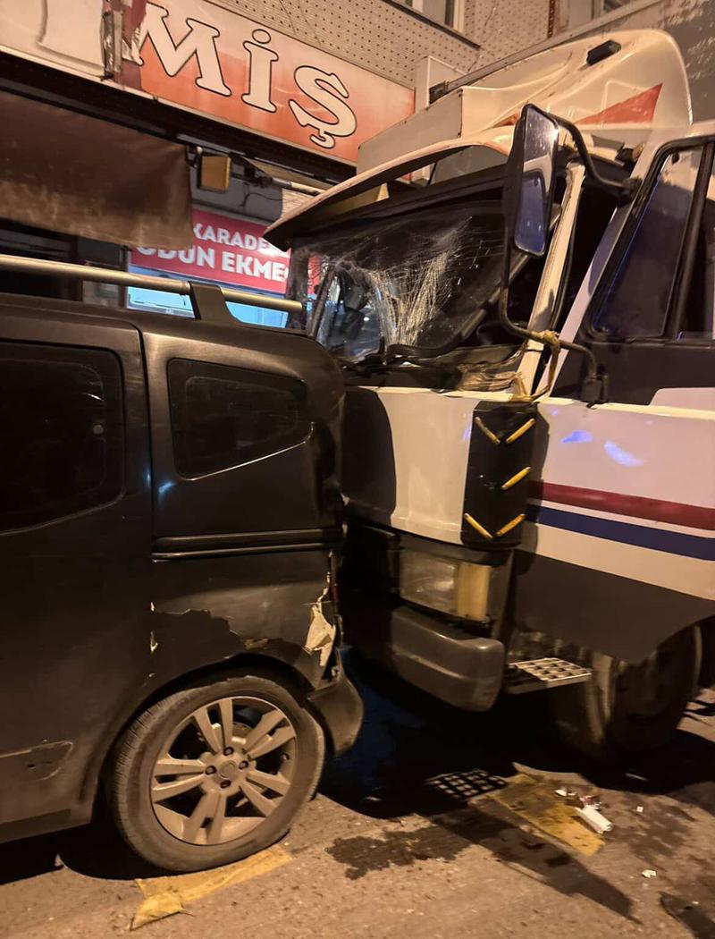Kontrolden çıkan kamyonet, park halinde bulunan üç hafif ticari araca ve bir otomobile çarparak durdu. Çarpmanın ardından sürüklenen bir araç, kaldırıma çıkarak bir ekmek fırınını işleten iş yerine girdi.
