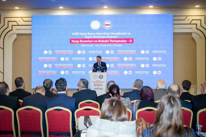 Tunç, Kızılcahamam’daki bir otelde, Memur-Sen ve Ankara Yıldırım Beyazıt Üniversitesi işbirliği ile düzenlenen “4688 Sayılı Kamu Görevlileri Sendikaları ve Toplu Sözleşme Kanunu-Yargı Kararları ve Hukuki Tartışmalar” Sempozyumu’nda konuştu.