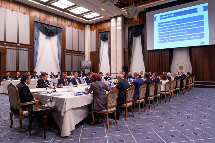 ANKARA (İGFA) – Nüfus Politikaları Kurulu’nun üçüncü toplantısı, kurul üyeleri ve ilgili kurum temsilcilerinin katılımıyla Cumhurbaşkanlığı Külliyesi’nde gerçekleştirildi. Cumhurbaşkanı Yardımcısı Cevdet Yılmaz, toplantının ardından yaptığı açıklamada, Cumhurbaşkanı Recep Tayyip Erdoğan’ın imzasıyla kurulan Nüfus Politikaları Kurulu’nun bir yıllık sürede önemli adımlar attığını belirtti.