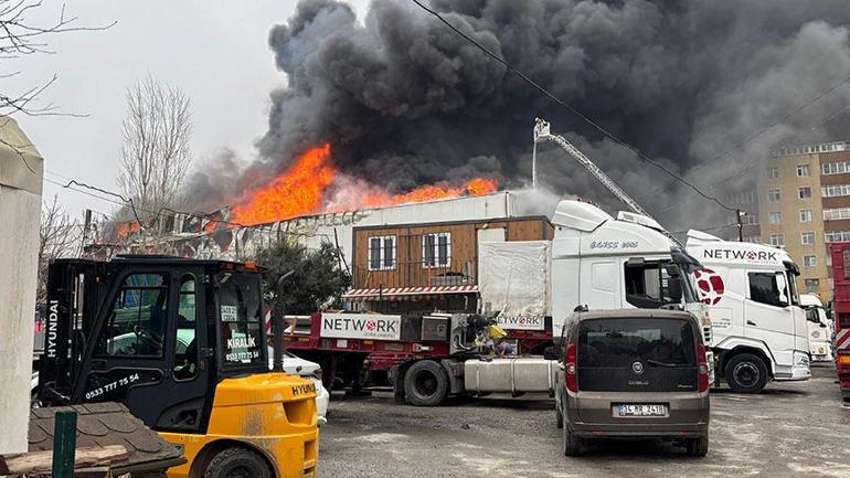 Ataşehir’de iş yerinde çıkan yangın itfaiye ekiplerince söndürülmeye çalışılıyor.