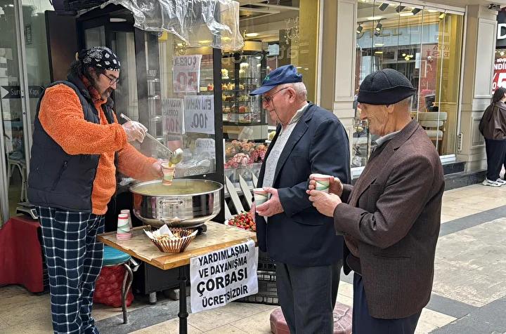 Mustafa Kemal Paşa Mahallesi Reşadiye Caddesi’nde lokanta işleten Onur Güngör, 15 gün önce ücretsiz çorba ikramı uygulaması başlattı. Güngör, iş yerinin önüne koyduğu ve ‘Yardımlaşma ve dayanışma çorbası ücretsizdir’ yazısı astığı masanın üzerindeki tencerede kaynattığı çorbayı, vatandaşlara ikram ediyor. Kısa sürede ilgi gören ücretsiz çorba ikramını sanal medyada gören hayırseverler de destek oluyor. İlçede daha önce böyle bir uygulamanın olmadığını ve bunun eksikliğini hissettiğini belirten Güngör, “İnsanların rahatça, çekinmeden bir tas çorba içebileceği bir yer olsun istedik. İlk başlarda bu çorba ikramını kendi imkanlarımla veriyordum. Sonra sanal medyadan gören hayırsever arkadaşlar ‘bizler için de çorba dağıt’ dediler. Örneğin bugünkü çorbayı ABD’de yaşayan bir arkadaşımızın desteği ile dağıtıyoruz. Bazen ise tavuklu pilav dağıtılmasını isteyenler de oluyor, onu da yapıyoruz. Bazen de diğer lokantacılardan ‘niye bedava çorba dağıtıyorsunuz’ diye tepki alıyoruz” dedi.