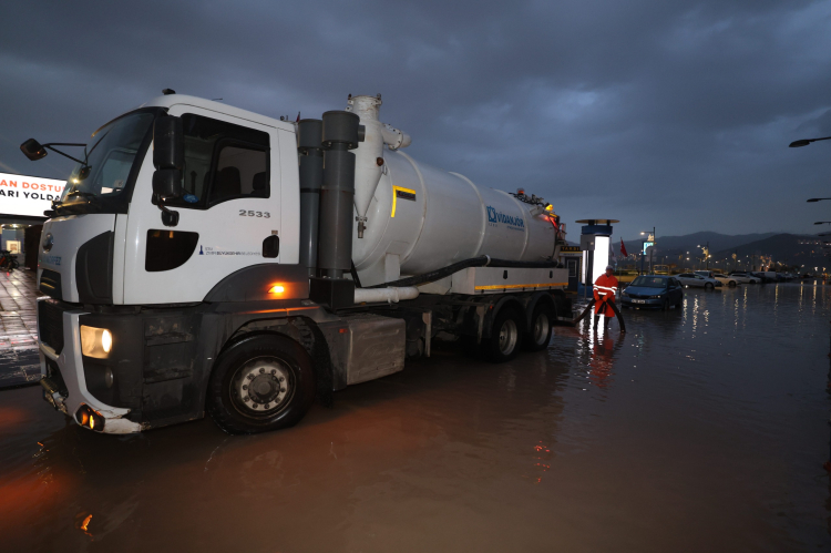 İZMİR (İGFA) – Meteoroloji Genel Müdürlüğü’nün uyarılarının ardından İzmir genelinde etkisini artıran yağış ve olumsuz hava koşullarına karşı İzmir Büyükşehir Belediyesi tüm birimleriyle sahada görev yapıyor.