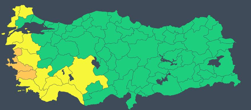 MGM İzmir ve Aydın için turuncu; Antalya, Balıkesir, Burdur, Çanakkale, Denizli, Edirne, Isparta, Kırklareli, Konya, Manisa ve Muğla için ise sarı kodlu gök gürültülü sağanak yağış ve fırtına uyarı yayınladı.