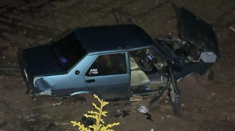 Çarpışmanın etkisiyle 45 LM 065 plakalı otomobil, yaklaşık 5 metre yükseklikten yolun alt kısmındaki tarlaya düştü.