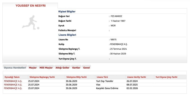Fenerbahçe takımdan ayrılması gündemde olan Faslı golcü Youssef En-Nesyri'nin ayrılığını TFF'ye bildirdi. İşte detaylar...