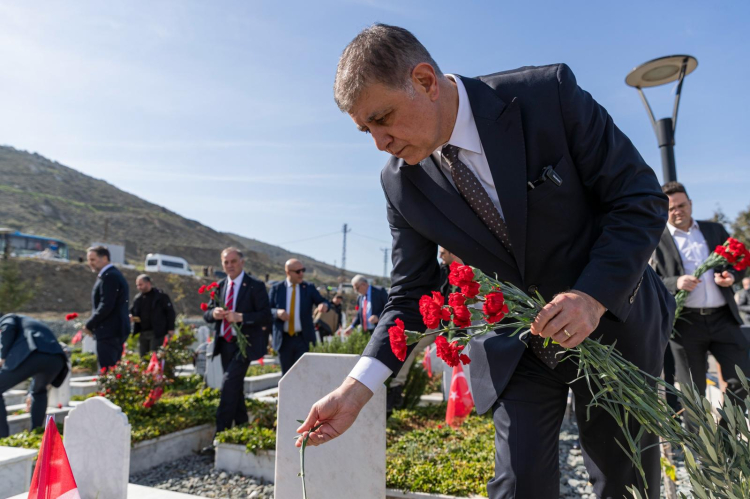 HATAY (İGFA) – CHP Genel Başkanı Özgür Özel ve İzmir Büyükşehir Belediye Başkanı Dr. Cemil Tugay, Hatay’da depremzedelerle bir araya geldi. Program kapsamında Antakya’da 6 Şubat depremlerinde yaşamını yitiren 4 bin yurttaşın defnedildiği Narlıca Deprem Şehitliği ziyaret edilerek karanfiller bırakıldı.