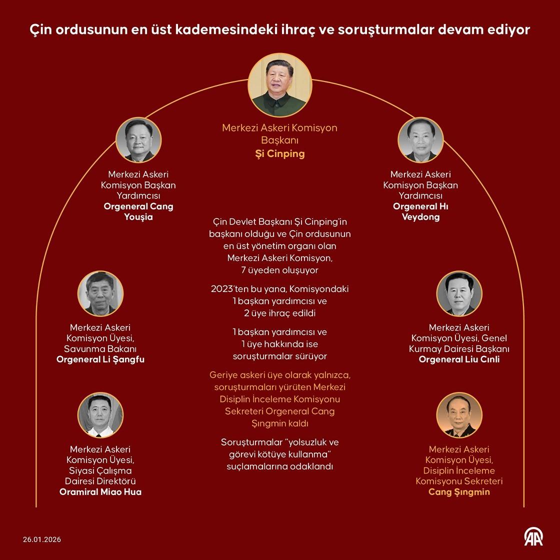 Çin’in yasama organı Ulusal Halk Kongresi Daimi Komitesinin düzenlediği acil oturumun ardından yapılan açıklamada, Eski Çin Mühendislik Fiziği Akademisi (CAEP) Direktörü Liu Cangli, Çin Ulusal Nükleer Şirketi (CNNC) Baş Mühendisi Luo Çi ve Eski Çin Havacılık Sanayi Şirketi (AVIC) Yönetim Kurulu Başkanı Cou Şinmin’in Meclis üyeliğine son verildiği belirtildi.