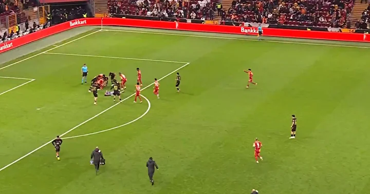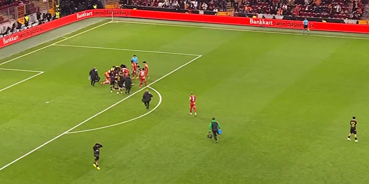 Maçın ikinci yarısına girer girmez, hava topu mücadelesinde Galatasaraylı forvet Ahmed Kutucu ile İstanbulspor kalecisi İsa Doğan şiddetli bir şekilde çarpıştı.