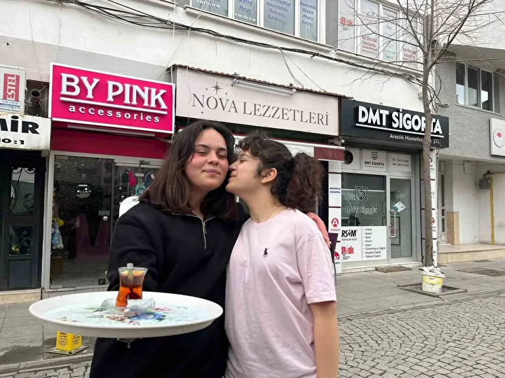 “Öncelikle kadın girişimci olmak ekstra zor. Ama 19 yaşında bunu başarabilmiş bir kardeşimiz. Aynı zamanda bana da hep destek, ben de ona desteğim. Yan komşum zaten. Bir şekilde ilerliyoruz ve mutluyuz birlikte. Sabah çayını demlemiş, sıcak poğaçalarını çıkarmış oluyor. Her sabah geldiğimizde kahvaltımızı yapıyoruz birlikte. Çay saatlerimiz oluyor. Her zaman güler yüzlüdür müşterisini karşılar. Esnaf olarak, sokak olarak hepimiz kendisinden çok memnunuz.”