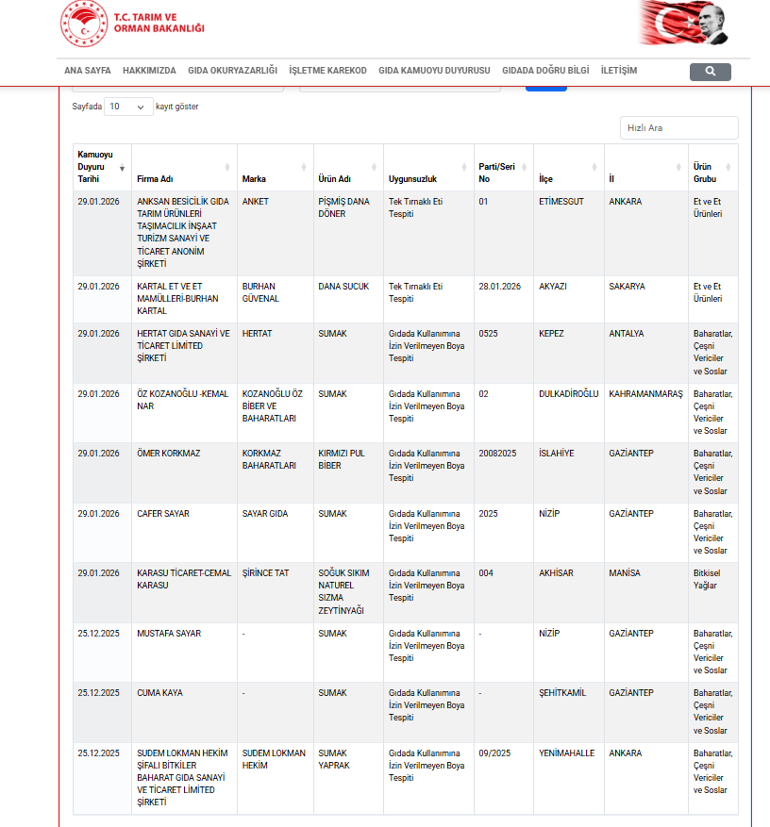 Tarım ve Orman Bakanlığı, kamuoyuyla paylaştığı liste sonrası yaptığı değerlendirmede, gıda güvenliğini tehlikeye atan uygulamalara karşı taviz verilmeyeceğini vurguladı. Söz konusu ürün ve ilgili firmalar hakkında yasal sürecin başlatıldığı, işlemlerin mevzuat çerçevesinde yürütüleceği bildirildi.