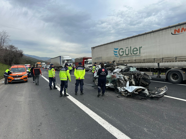 İstanbul istikametine seyir halinde olan Hamza Güven (25) yönetimindeki 34 BZN 727 plakalı cip, sürücüsünün direksiyon hakimiyetini kaybetmesi sonucu aynı yönde ilerleyen 33 AZD 564 plakalı TIR’a arkadan çarptı.