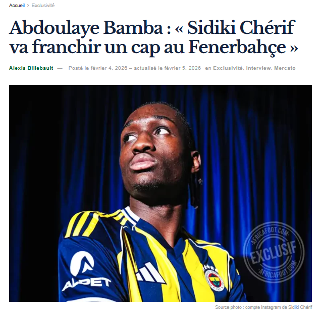 Genç futbolcunun sarı-lacivertli forma ile sunacağı katkı merak edilirken Sidiki’nin eski takımı Angers’ten takım arkadaşı olan Abdoulaye Bamba, Afrika basınına yaptığı açıklamalarda eski takım arkadaşından bahsetti. İşte fotomac.com.tr Ömer Çağrı Akdere’nin derlediği o haber…