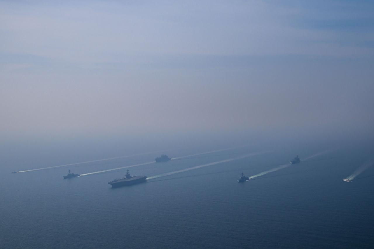 Sosyal medya üzerinden yapılan açıklamada, “Abraham Lincoln Uçak Gemisi Taarruz Grubu, 2 askeri ikmal gemisi ile 2 ABD Sahil Güvenlik gemisinin eşliğinde bugün Umman Denizi’nde seyir gerçekleştirdi.