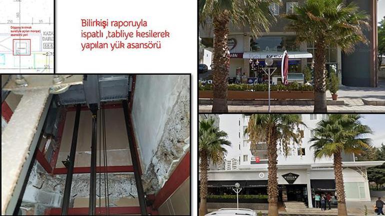 Solda yapının tabliyesi kesilerek açılan asansör, sağda ise 2015 ile 2019’daki pastane tadilatlarının son haline ilişkin görseller var.