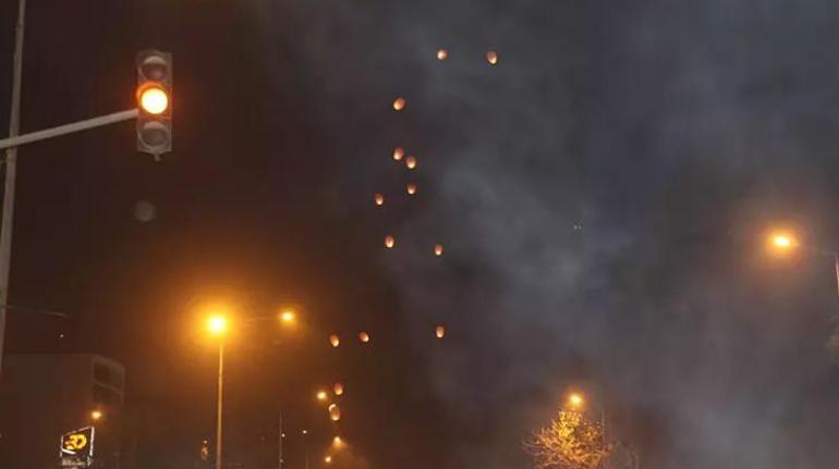 Ellerinde karanfil ve beyaz balonlar taşıyan depremzedeler, çok sayıda dilek balonunu yakıp, gökyüzüne bıraktı.