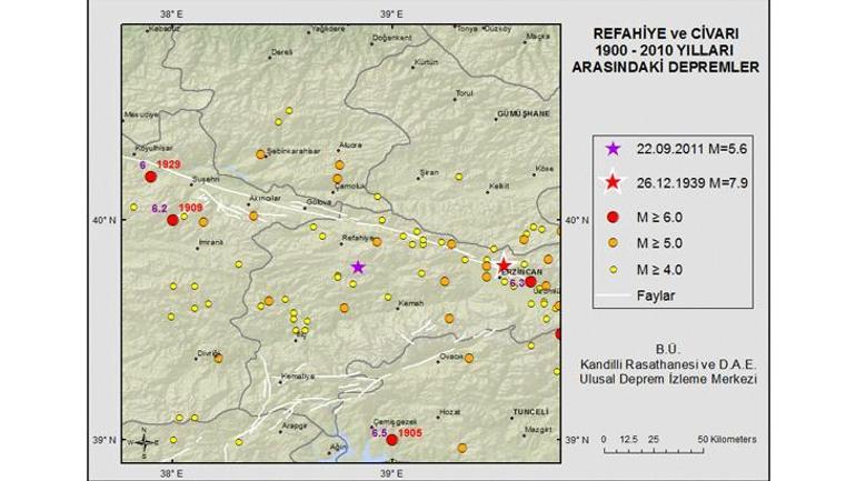 Erzincan’da geçmişte yaşanmış depremlerin tarihleri ve büyüklükleri şöyle sıralanabilir: 10 Aralık 1930 Kemah-Erzincan Depremi (5.6), 21 Kasım 1939 Tercan-Erzincan Depremi  (5.6), 26 Aralık 1939 Erzincan Depremi (7.9), 12 Kasım 1941 Erzincan Depremi (5.9), 15 Şubat 1978 Üzümlü-Erzincan Depremi (5.9), 18 Ekim 1980 Tercan-Erzincan Depremi (4.7), 6 Nisan 1983 Çayırlı-Tercan Depremi (5.0), 13 Mart 1992 Erzincan Depremi (6.8), 22 Eylül 2011 (5.6). Peki bölgenin büyük bir depremle sarsılma ihtimali nedir? Doç. Dr. Bülent Özmen açıkladı.