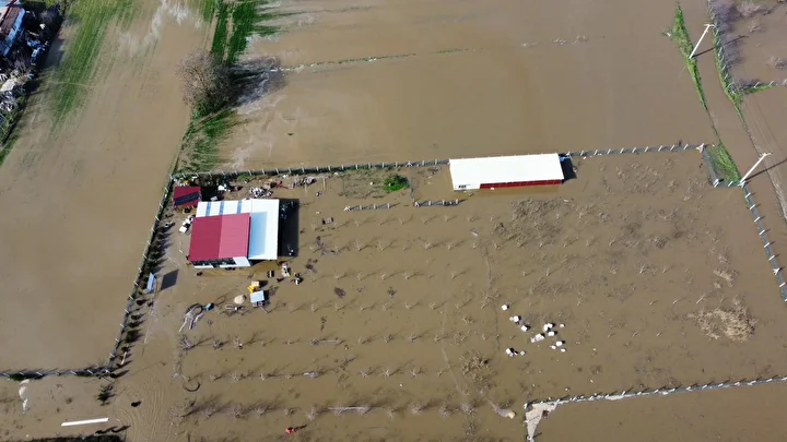 Taşkın üzerine bölgede bulunan çiftlikler ile tarım alanları su altında kaldı. Çiftliklerde hayvanları bulunan vatandaşlar, traktörlerle hayvanları alıp, başka yere götürdü.