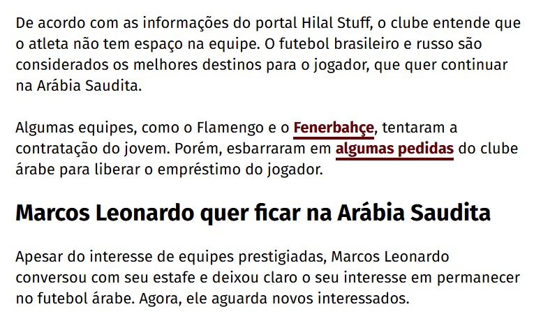Ancak transferde belirleyici nokta oyuncunun tercihi oldu. Marcos Leonardo’nun, menajer ekibiyle yaptığı görüşmelerin ardından kariyerine Suudi Arabistan’da devam etmek istediğini net şekilde ilettiği aktarıldı.