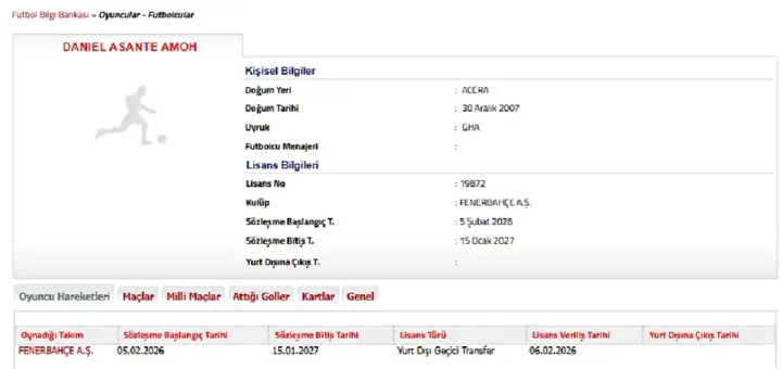 Sarı-lacivertliler, 2007 doğumlu Ganalı futbolcu Daniel Asante Amoh’u kadrosuna kattığını Türkiye Futbol Federasyonu’na (TFF) bildirdi.