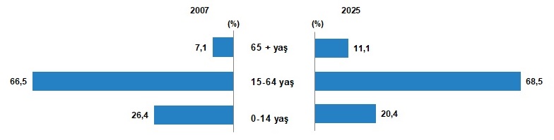 Yaş gruplarına göre nüfus oranı, 2007, 2025