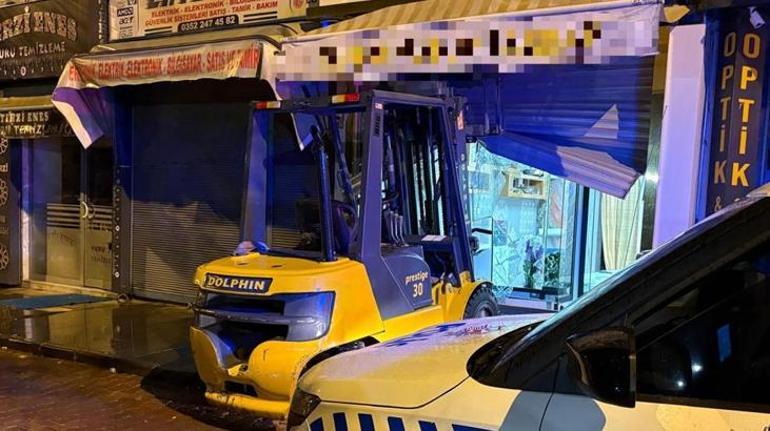 Edinilen bilgiye göre, ilçeye bağlı İldem Cumhuriyet Mahallesi Tekin Sokak’ta bulunan bir kuyumcu dükkanında meydana gelen olayda, kimliği henüz belirlenemeyen maskeli bir şahıs, forkliftle kuyumcu dükkanının kepengini kırarak, dükkana girdi. Alarmın devreye girmesi üzerine bölgeye çok sayıda polis ekibi sevk edildi. Polis ekipleri çevrede güvenlik önlemi alarak, dükkanda inceleme yaptı. Dükkanda bulunan kasalara yöneldiği belirlenen şahsın, tek başına kasayı götüremeyince panik olarak dükkanda ziynet eşyası alarak, kaçtığı öğrenildi. Ekipler forkliftli hırsızı yakalamak için çalışma başlattı. Öte yandan ekipler forkliftin de çalıntı olduğu üzerinde duruyor.