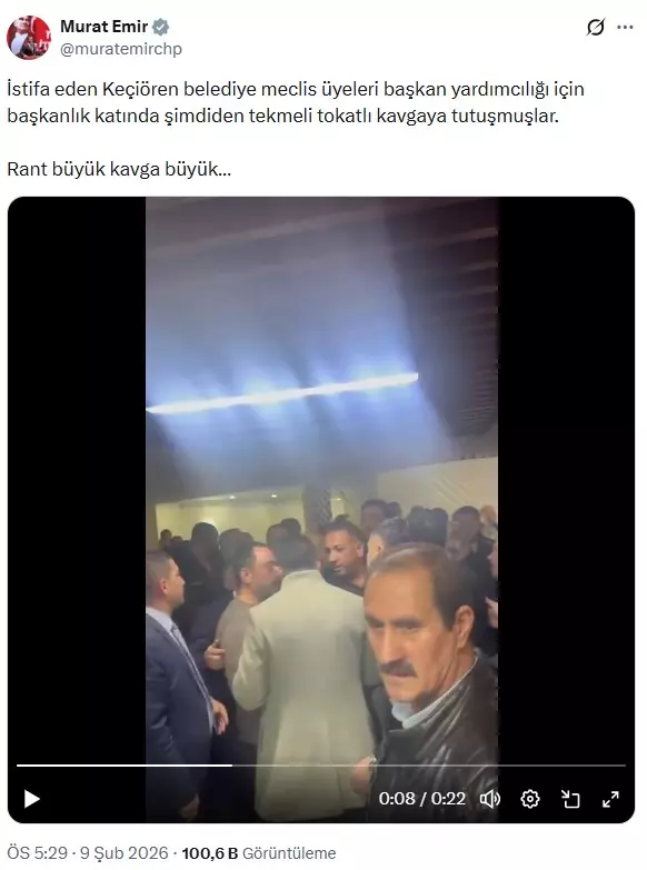 Kavgaya ilişkin sert açıklamalarda bulunan Murat Emir, meclis üyelerinin başkan yardımcılığı kadroları için birbirine girdiğini ifade etti. Emir, “İstifa eden Keçiören belediye meclis üyeleri başkan yardımcılığı için başkanlık katında şimdiden tekmeli tokatlı kavgaya tutuşmuşlar. Rant büyük kavga büyük…” dedi.