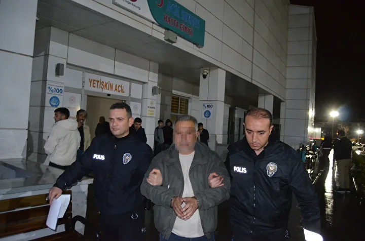 Gözaltına alınan cinayet şüphelisi, sağlık kontrolü için hastaneye getirildi.