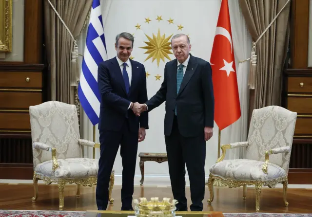 Erdoğan ve Miçotakis, merdivenlerde Türk ve Yunan bayrakları önünde fotoğraf çektirdi. Cumhurbaşkanı Erdoğan, daha sonra Miçotakis ile görüşmeye geçti. İkili görüşme sonrası Erdoğan ve Miçotakis, Türkiye-Yunanistan 6. Yüksek Düzeyli İşbirliği Konseyi Heyetlerarası Görüşme Oturumu’na başkanlık edecek.