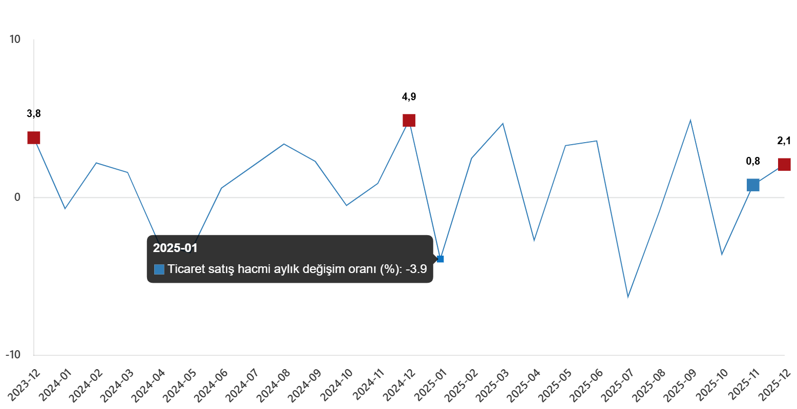 Ticaret satış hacmi aylık değişim oranı (%), Aralık 2025
