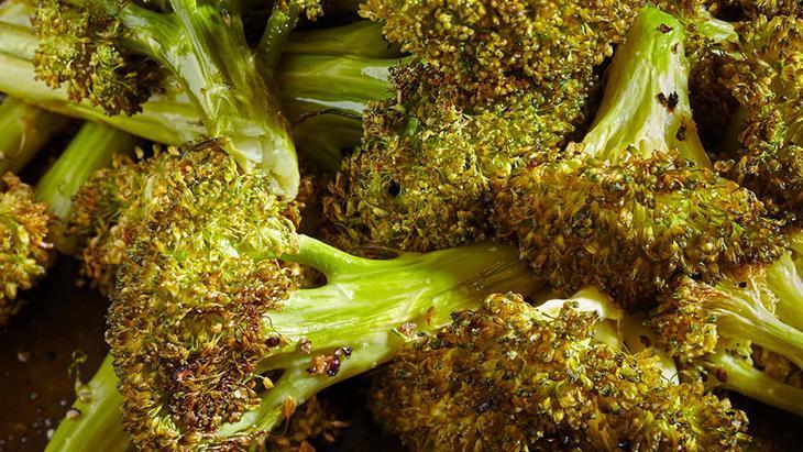 Brokoli, önce zeytinyağı ve kekikle fırının yüksek ısısında kavrularak dışı hafifçe karamelize oluyor. Ardından, nohutların bir kısmı ayrı bir tepside susam ve baharatlarla birlikte çıtır hale gelene kadar pişiriliyor.