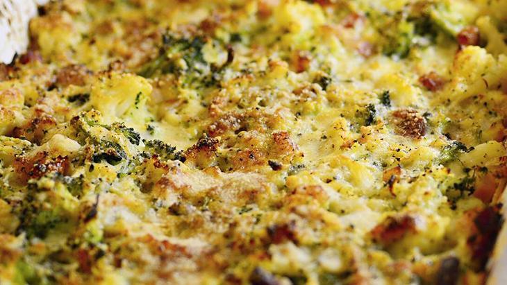 Brokolinin fırında kavrulmasıyla ortaya çıkan derin ve fındıksı aromayı, kremamsı tahini-nohut püresi ve üzerinde gezdirilen baharatlı çıtır nohutlarla birleştiriyor. Limonun tazeliği ve taze nane yaprakları, yemeğe ferah bir dokunuş katıyor.